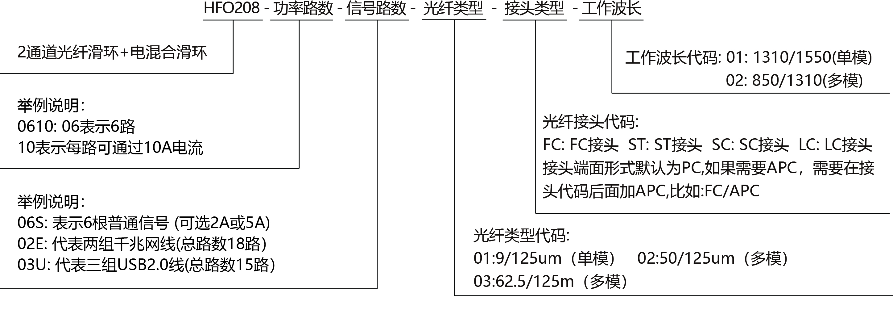 | HFO208 - 2路光+電滑環(huán)選型表 | |||||||||