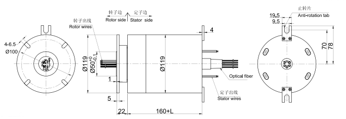 HFO808系列是光電一體化旋轉(zhuǎn)接頭,同時能傳輸8路光纖和1~96路信號(2A),整體外徑(119mm),整個產(chǎn)品非常緊湊,專門為對空間尺寸有要求的應(yīng)用場合。