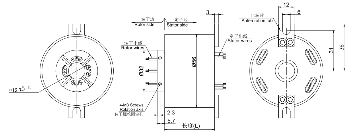 ● HT1256是標(biāo)準(zhǔn)系列過孔滑環(huán)(高速過孔滑環(huán)),,過孔直徑12.7mm(適用任何<=12.7mm),外徑為56mm精密導(dǎo)電滑環(huán)。
