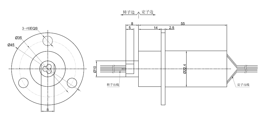 1、外形尺寸詳細(xì)見“空心軸導(dǎo)電滑環(huán)尺寸示意圖”;