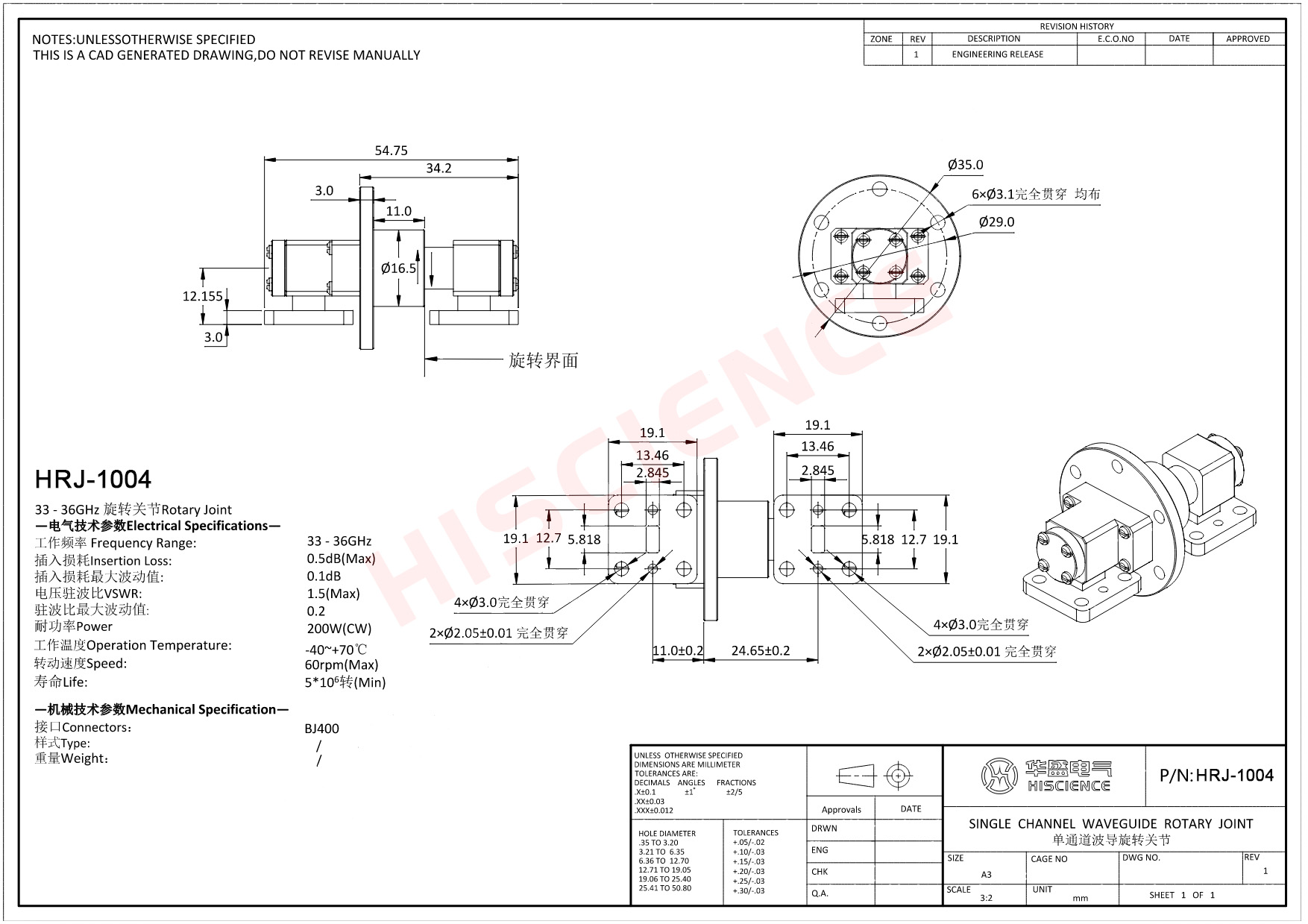 | HRJ-1004 | 33-36 | 1 | 1.5 | BJ400 | 0.5 | 200 |