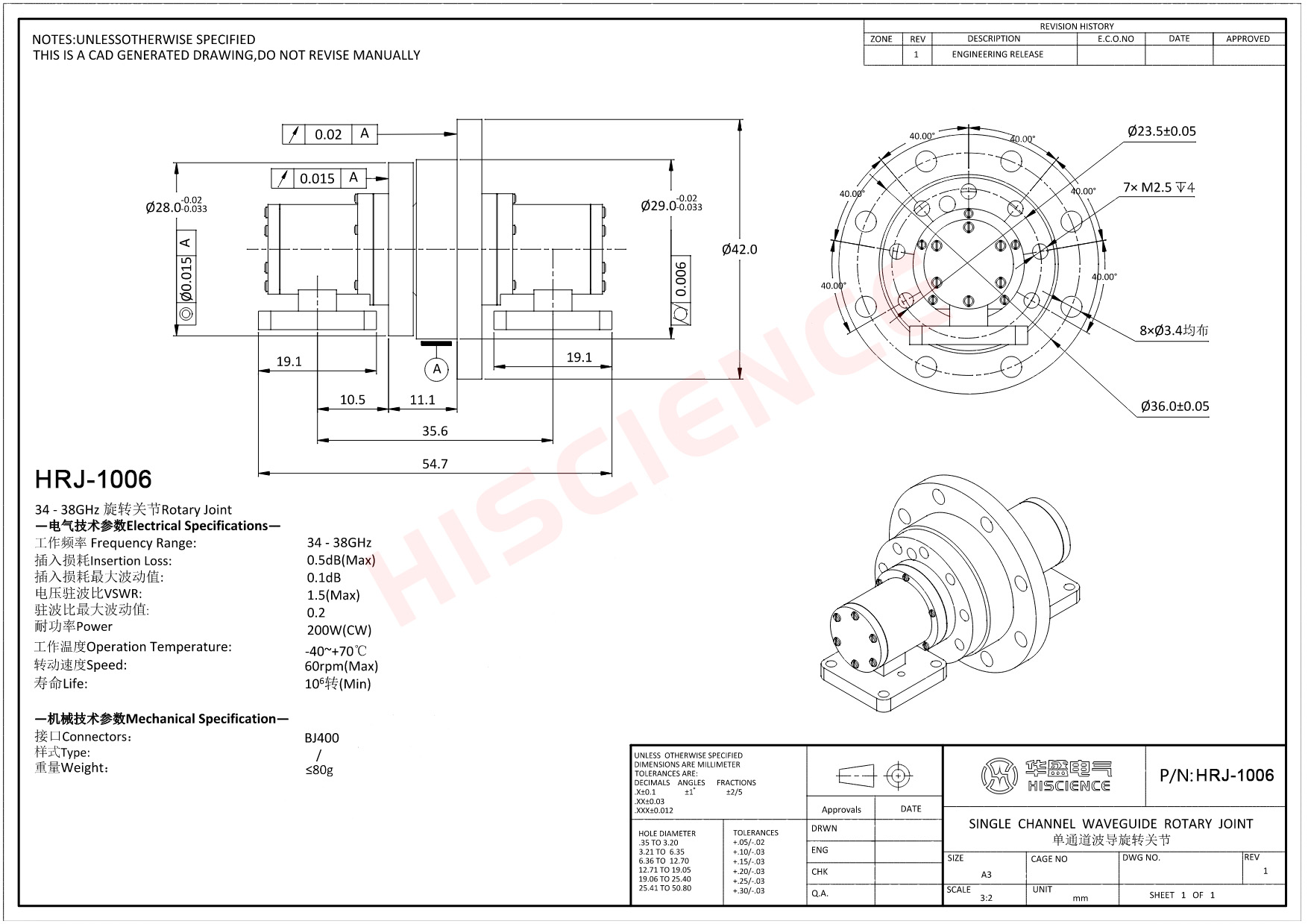 | HRJ-1006 | 34-38 | 1 | 1.5 | BJ400 | 0.5 | 200 |