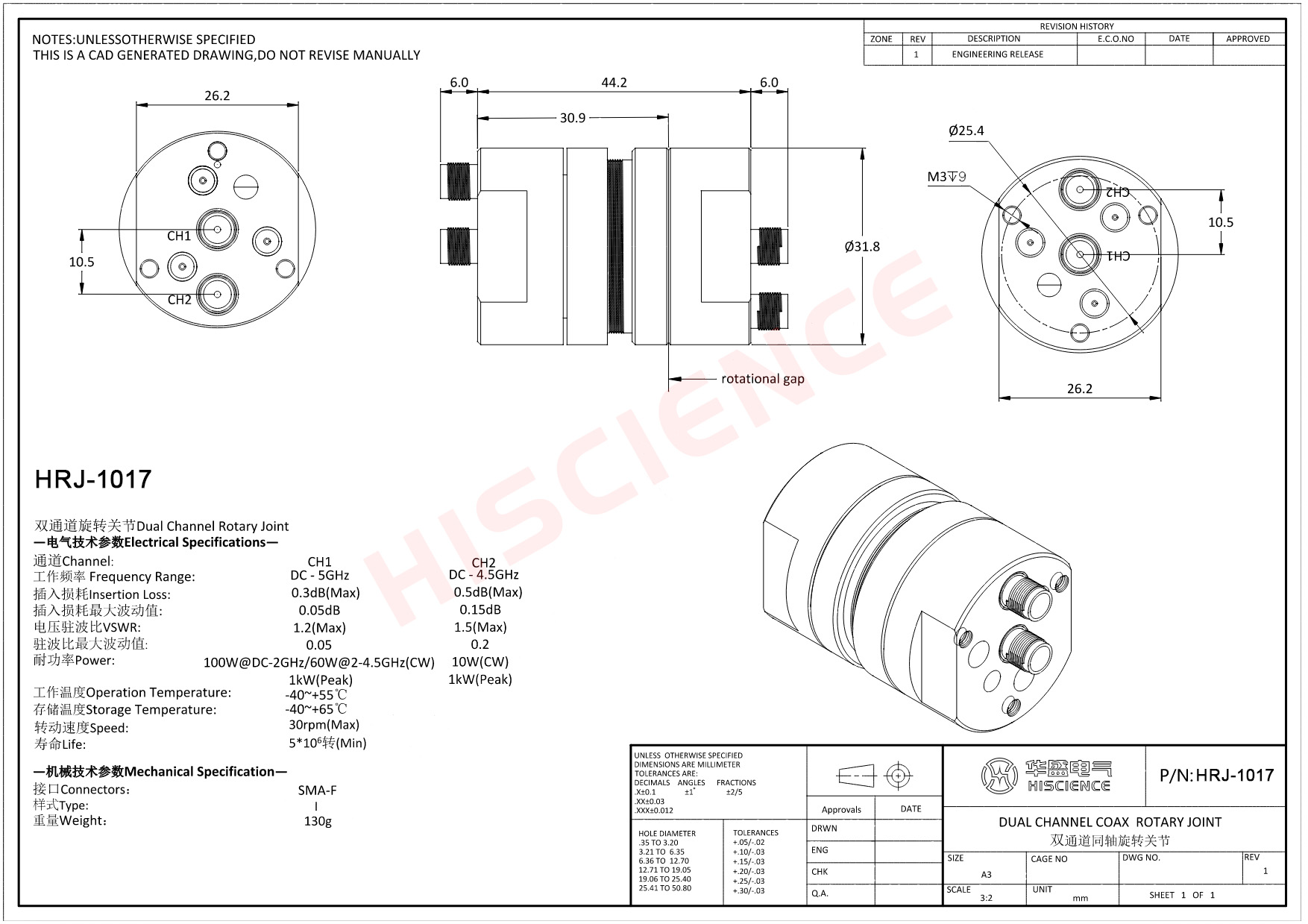 1、外形尺寸詳細見“射頻導電滑環(huán)尺寸示意圖”;