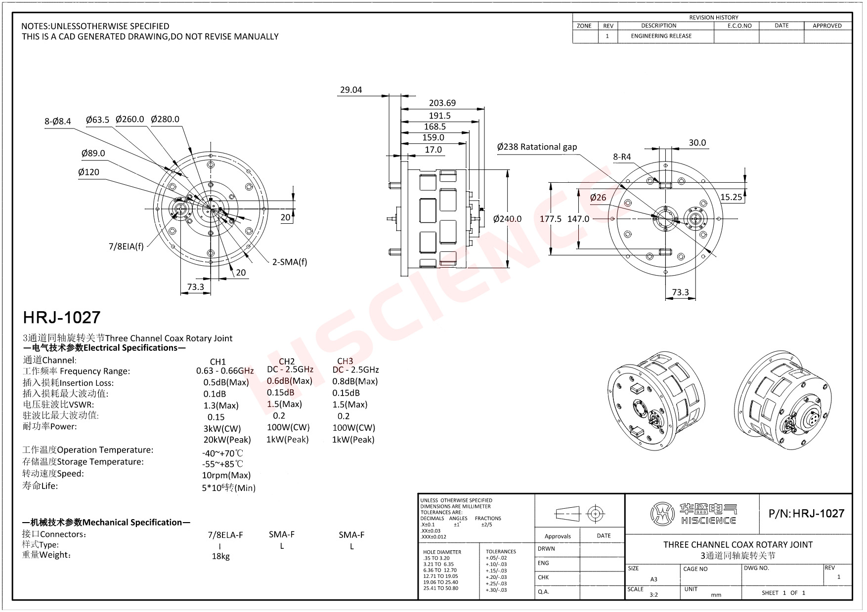1、外形尺寸詳細(xì)見“射頻導(dǎo)電滑環(huán)尺寸示意圖”;